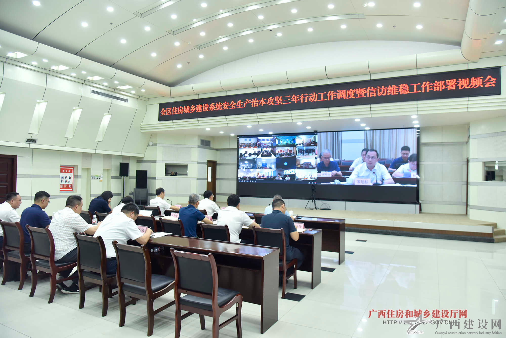 全區(qū)住房城鄉(xiāng)建設(shè)系統(tǒng)安全生產(chǎn)治本攻堅(jiān)三年行動(dòng)工作調(diào)度暨信訪維穩(wěn)工作部署視頻會(huì)議現(xiàn)場(chǎng)