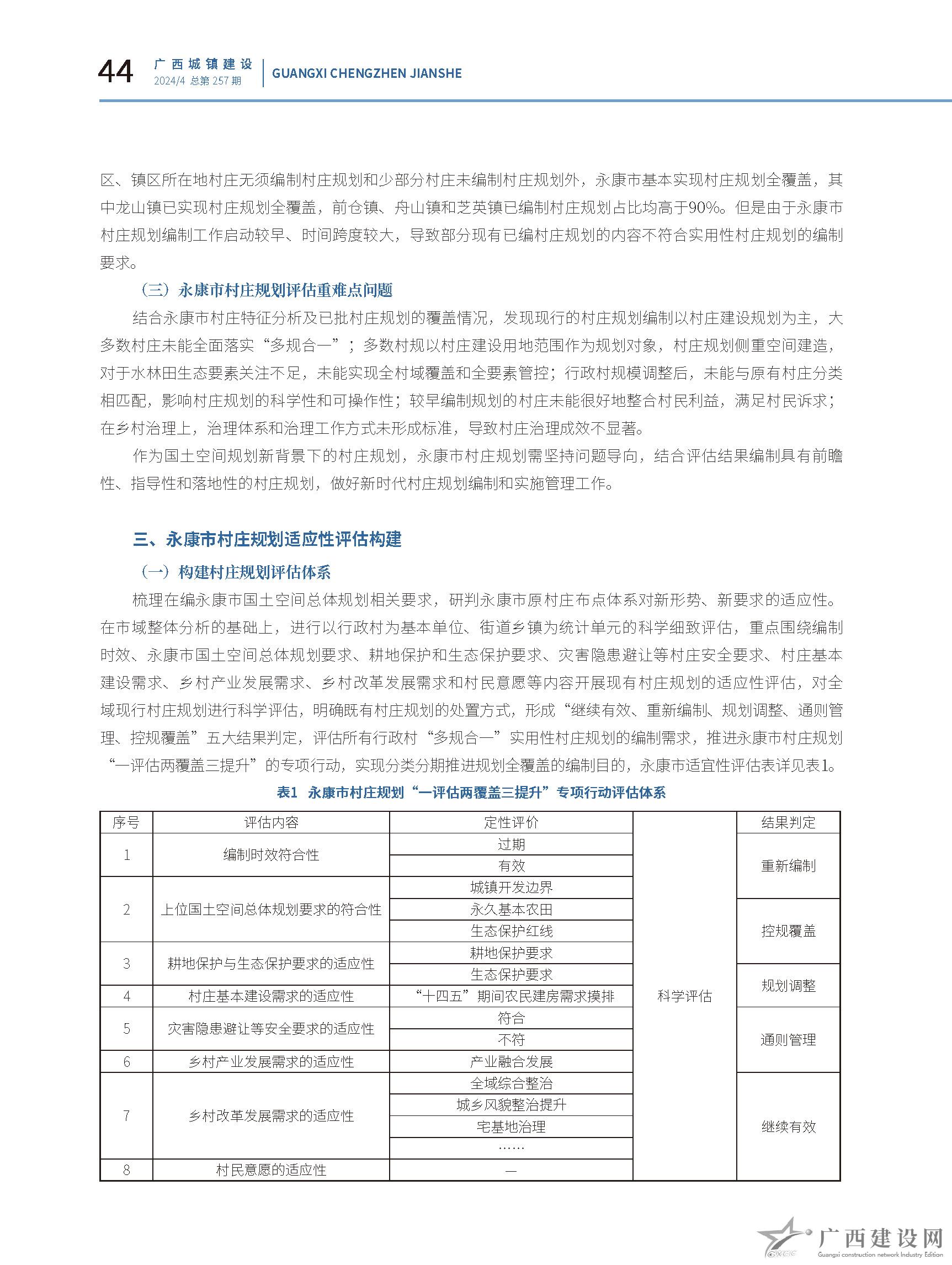 國土空間規劃體系下村莊規劃評估與實踐探索——以浙江省永康市為例