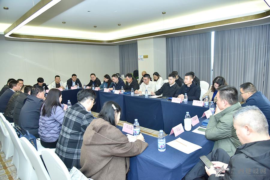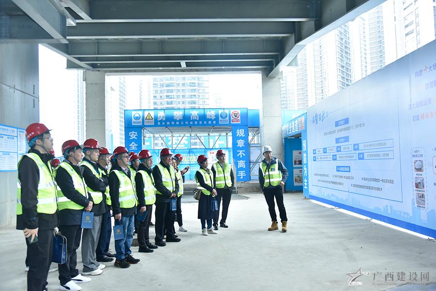 活動當天,在自治區住房城鄉建設廳的指導下,來自廣西的與會建筑業企業負責人及代表30余人,一同走進由中建八局西南公司承建的中海天府中心項目現場進行實地觀摩并召開座談會。