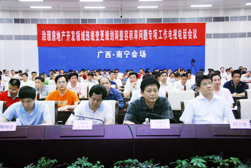 住房和城鄉(xiāng)建設(shè)部部長姜偉新主持會議。住房和城鄉(xiāng)建設(shè)部副部長仇保興對開展房地產(chǎn)開發(fā)領(lǐng)域違規(guī)變更規(guī)劃調(diào)整容積率專項治理工作作了全面部署,并對工作的重點、時間和方法提出了要求。監(jiān)察部副部長郝明金要求要充分認(rèn)識做好專項治理工作的重要性和緊迫性,并強(qiáng)調(diào)全國監(jiān)察部門要充分發(fā)揮職能作用,配合住房城鄉(xiāng)建設(shè)部門,共同遏制房地產(chǎn)開發(fā)領(lǐng)域腐敗問題易發(fā)多發(fā)勢頭。