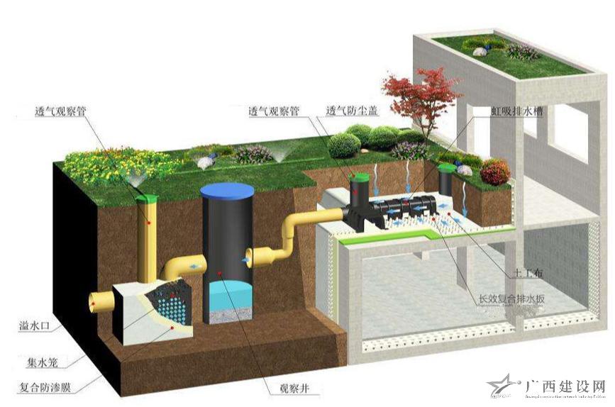 從另一角度看,虹吸排水系統還節省了材料成本?;厥盏挠晁涍^種植頂板上的回填土過濾,水質可以達到植物澆灌或沖洗道路的要求,具有良好的社會經濟效益。