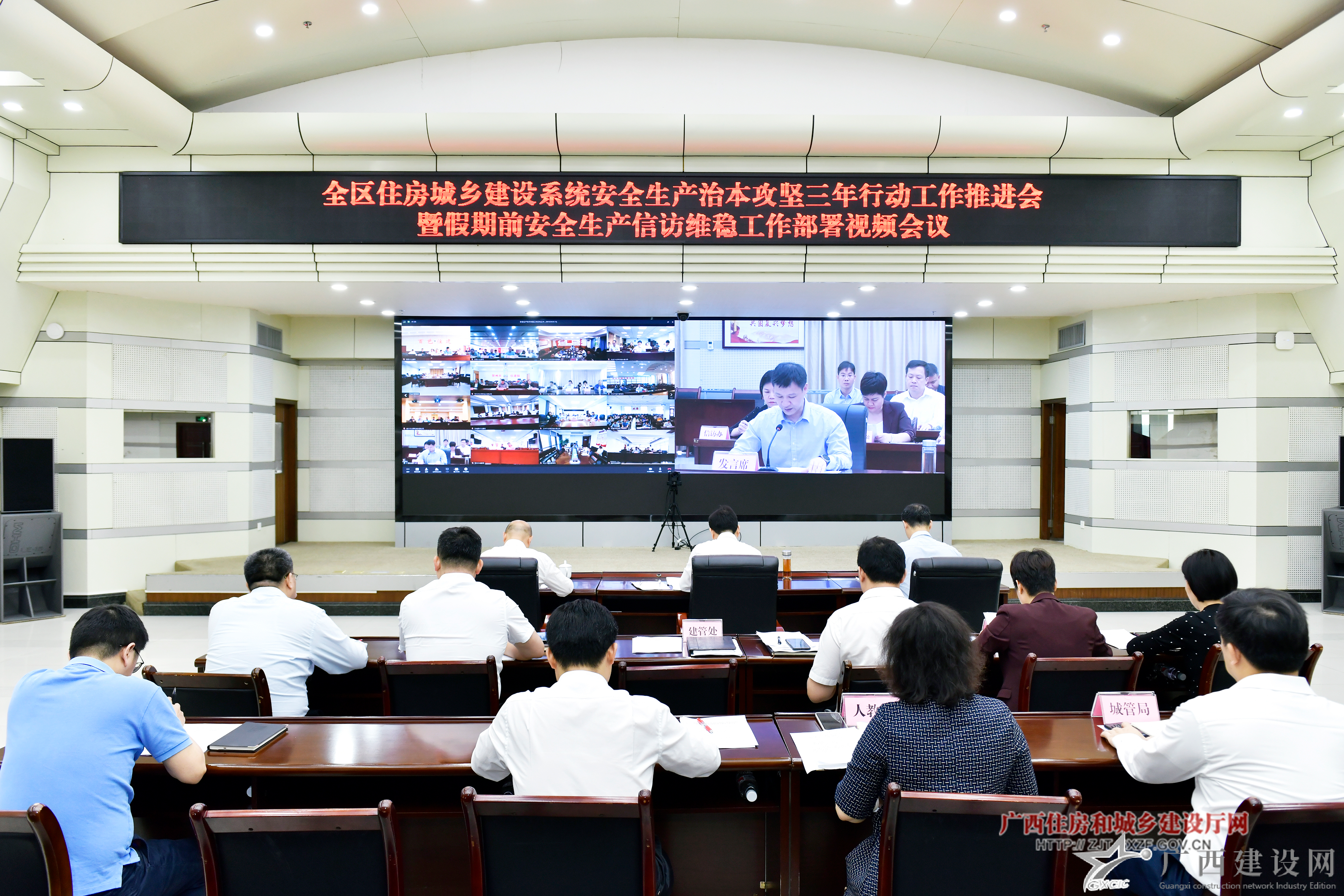 全區住房城鄉建設系統安全生產治本攻堅三年行動工作推進會暨假期前安全生產信訪維穩工作部署視頻會議現場
