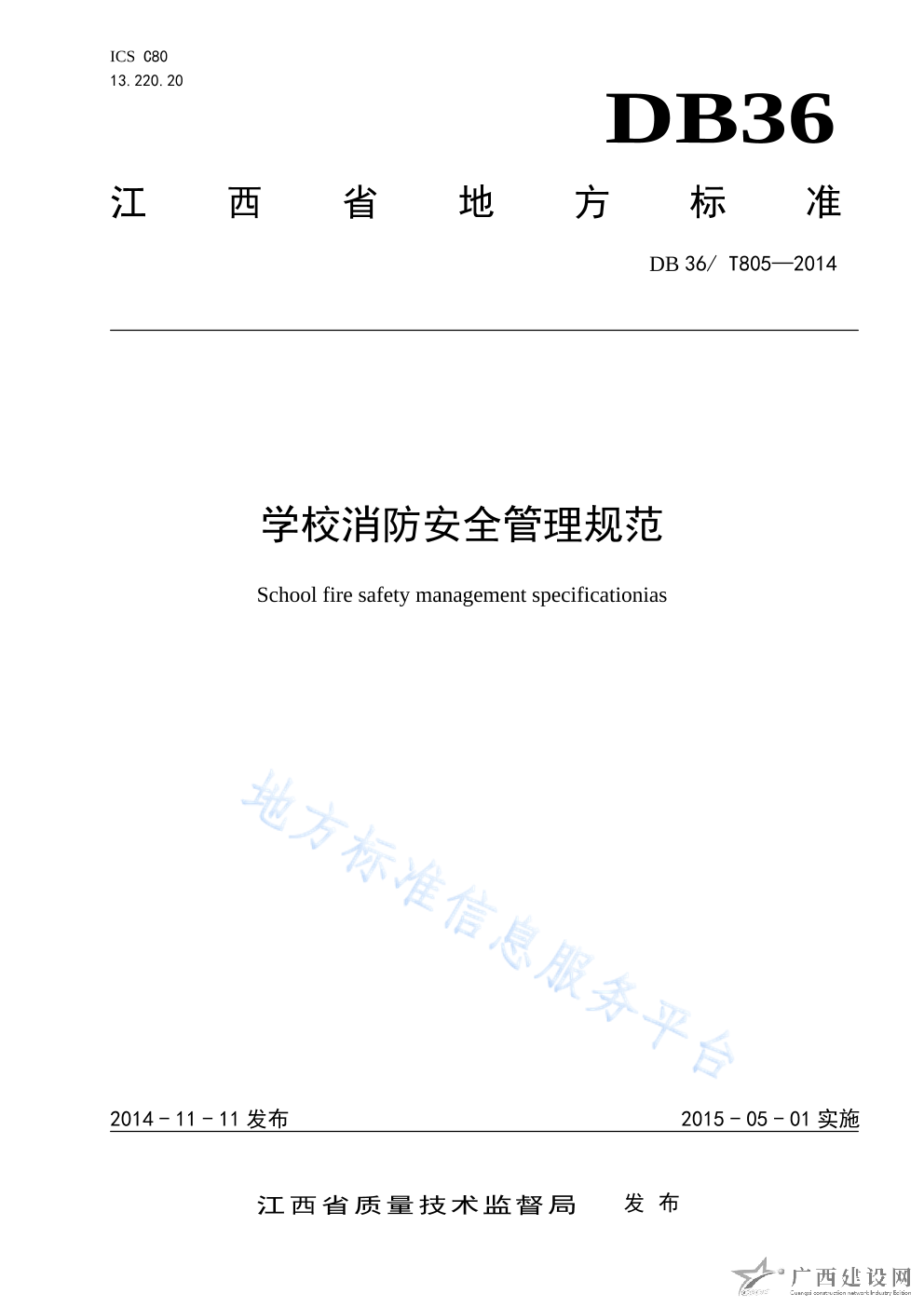 DB36 T805-2014學(xué)校消防安全管理規(guī)范