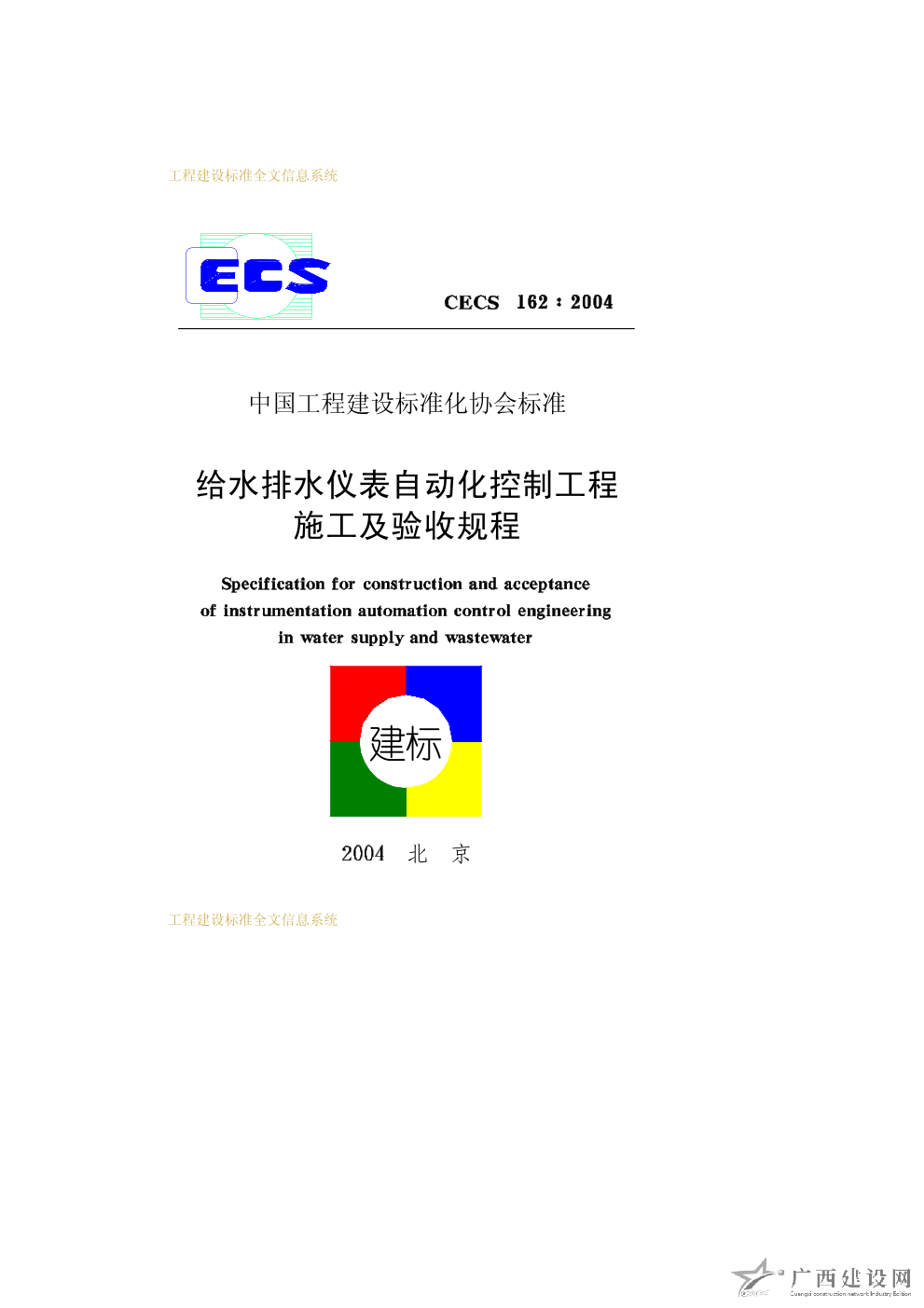 給水排水儀表自動化控制工程施工及驗收規程 CECS162∶2004