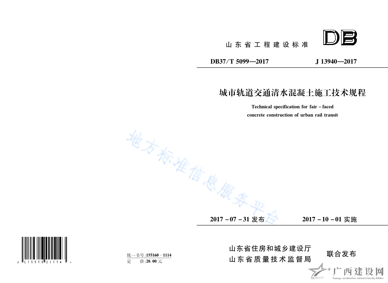 DB37 T5099-2017城市軌道交通清水混凝土施工技術(shù)規(guī)程