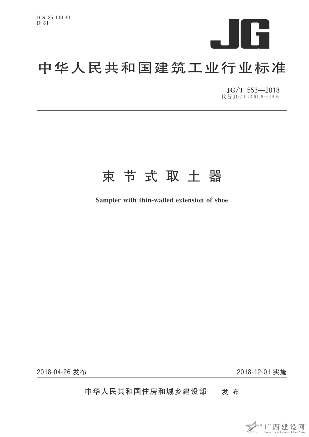 JG-T548-2018:厚壁取土器