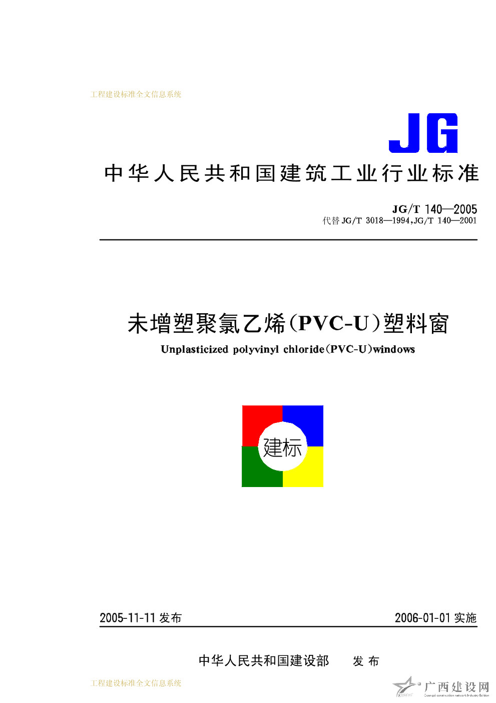 未增塑聚氯乙烯(PVC-U)塑料窗 JG/T140-2005