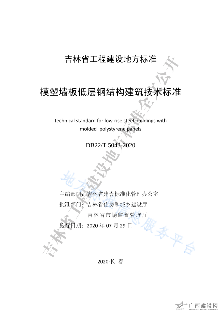 DB22 5043-2020模塑墻板低層鋼結(jié)構(gòu)建筑技術(shù)標(biāo)準(zhǔn)