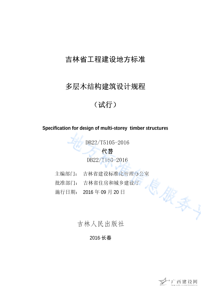 DB22T5105-2016多層木結(jié)構(gòu)建筑設(shè)計(jì)規(guī)程(試行)