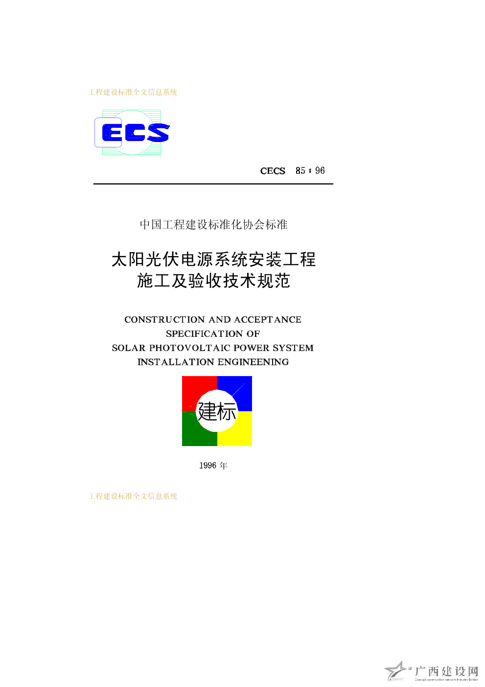 太陽(yáng)光伏電源系統(tǒng)安裝工程施工及驗(yàn)收技術(shù)規(guī)范 CECS85∶96