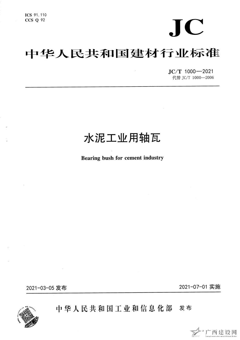 JC T 1000-2021 水泥工業(yè)用軸瓦
