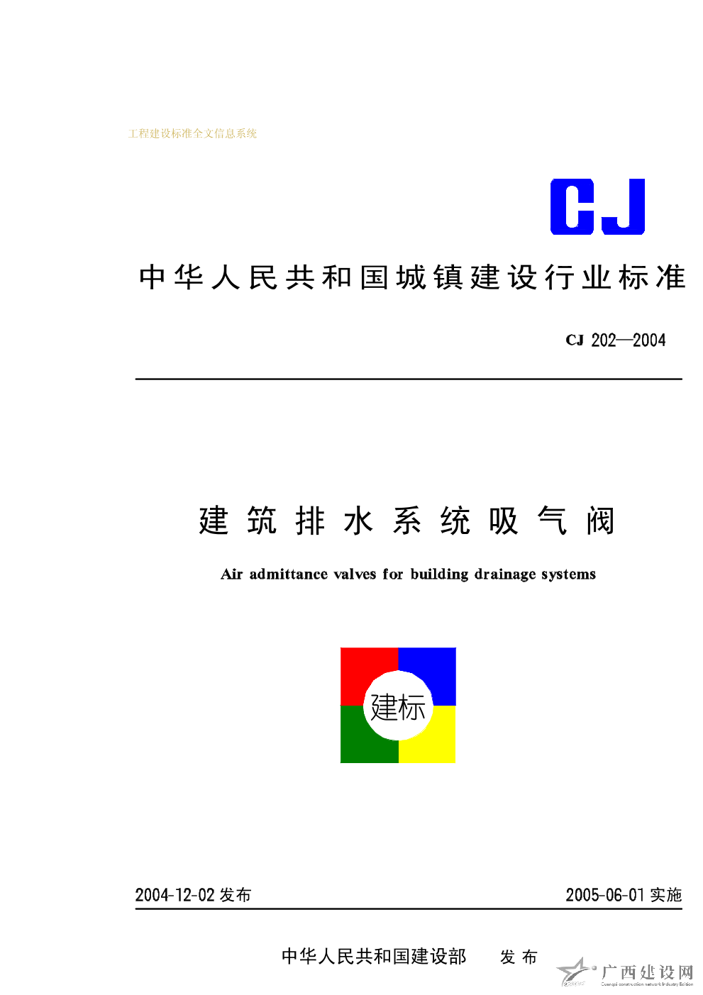 建筑排水系統(tǒng)吸氣閥 CJ202-2004