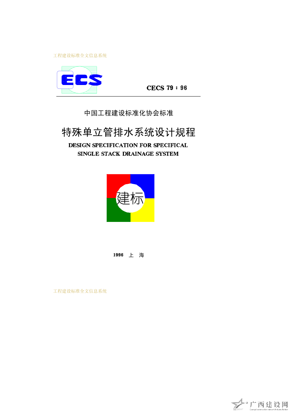 特殊單立管排水系統(tǒng)設(shè)計(jì)規(guī)程 CECS79∶96