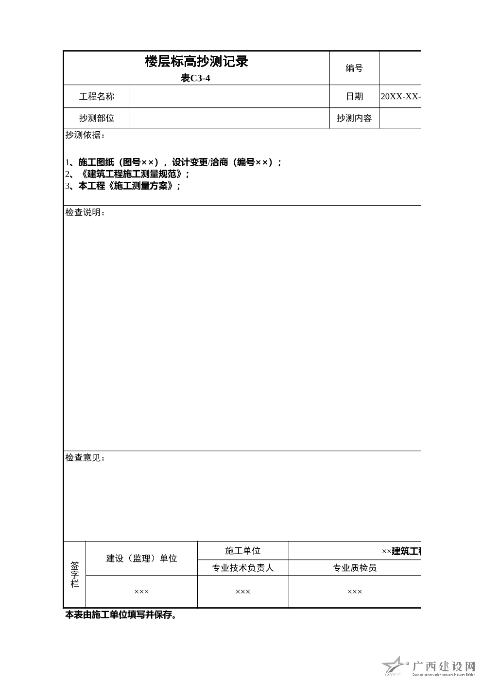 樓層標(biāo)高抄測(cè)記錄表C3-4