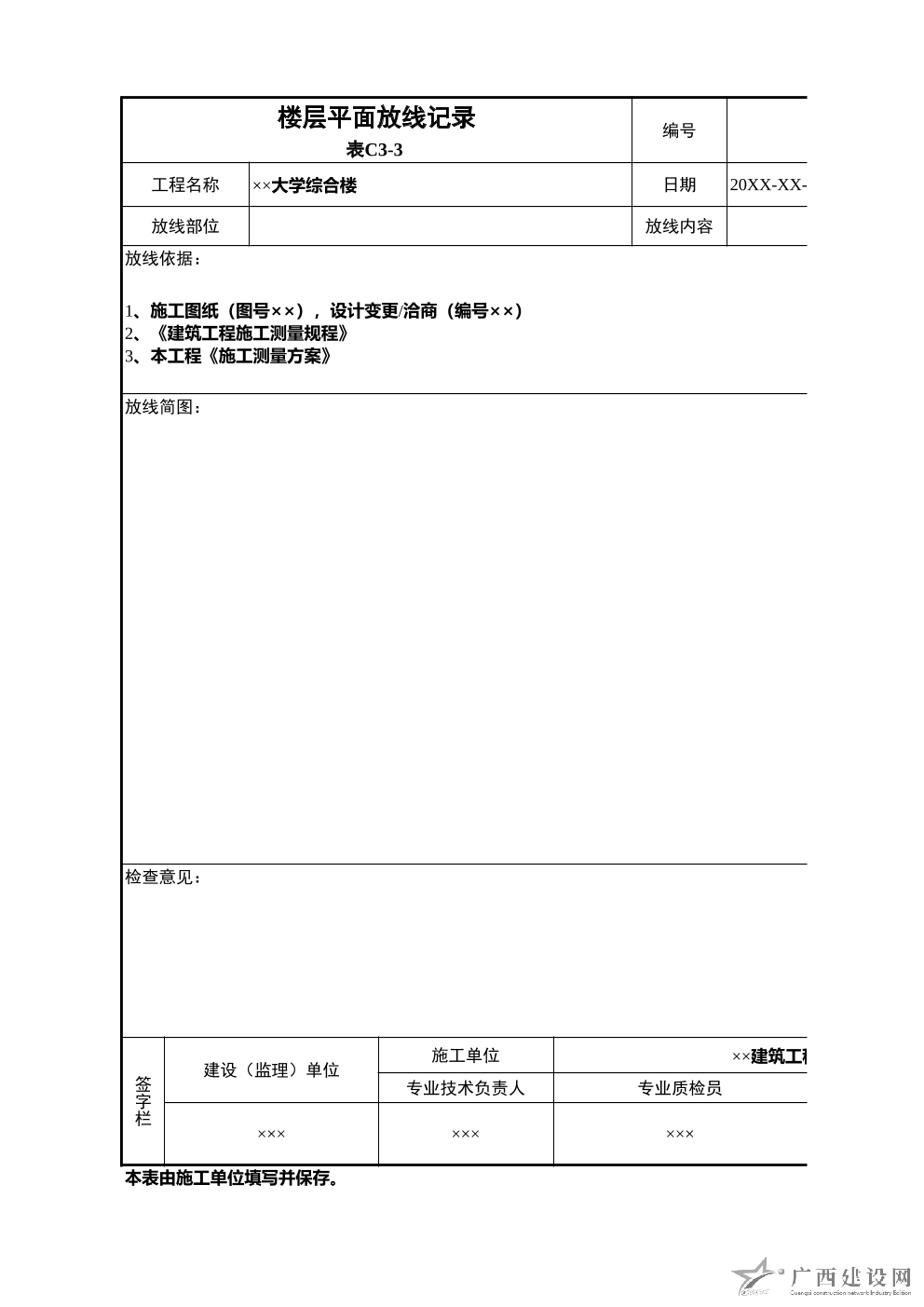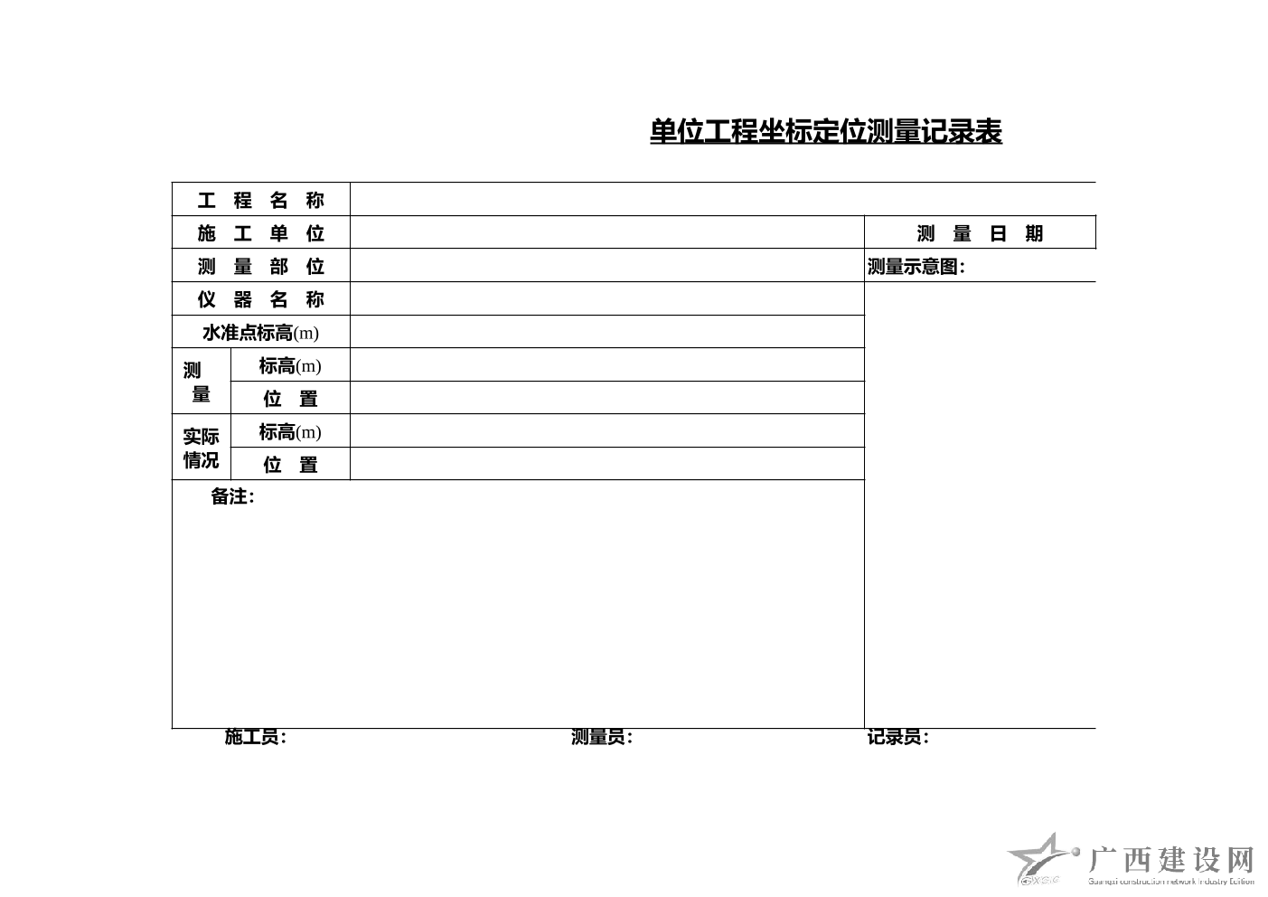 單位工程坐標(biāo)定位測(cè)量記錄表