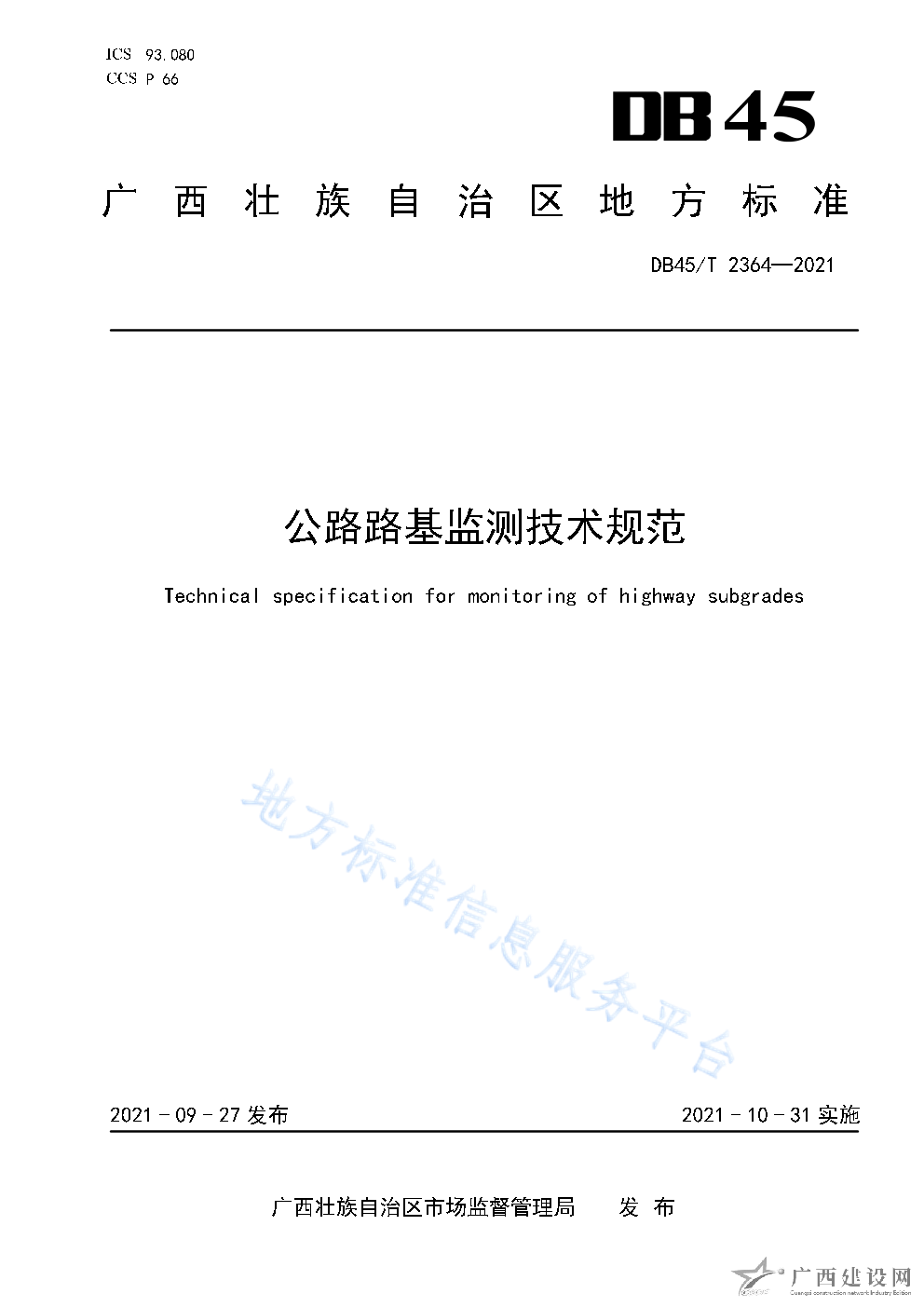 DB45T 2364-2021公路路基監(jiān)測(cè)技術(shù)規(guī)范
