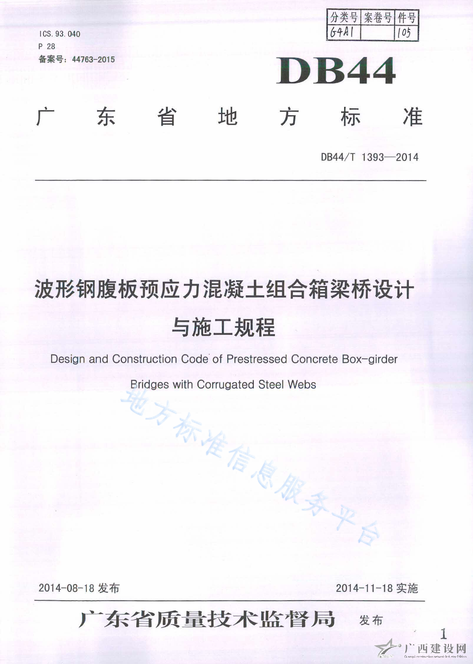 DB44 T1393-2014波形鋼腹板預(yù)應(yīng)力混凝土組合箱梁橋設(shè)計(jì)與施工規(guī)程