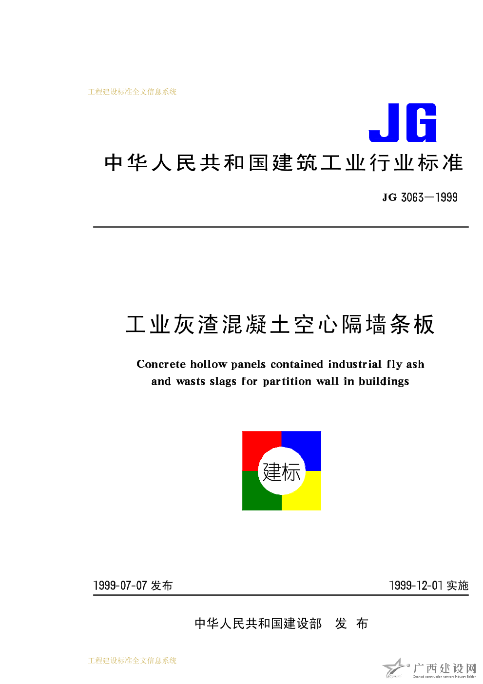 工業(yè)灰渣混凝土空心隔墻條板 JG3063-1999