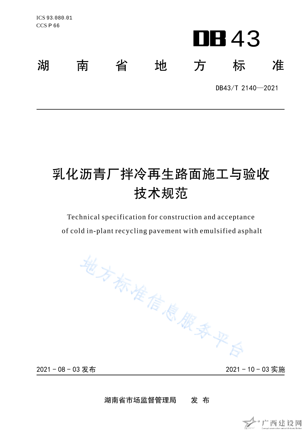 DB43 T2141-2021瀝青路面熱再生施工與驗收技術規范