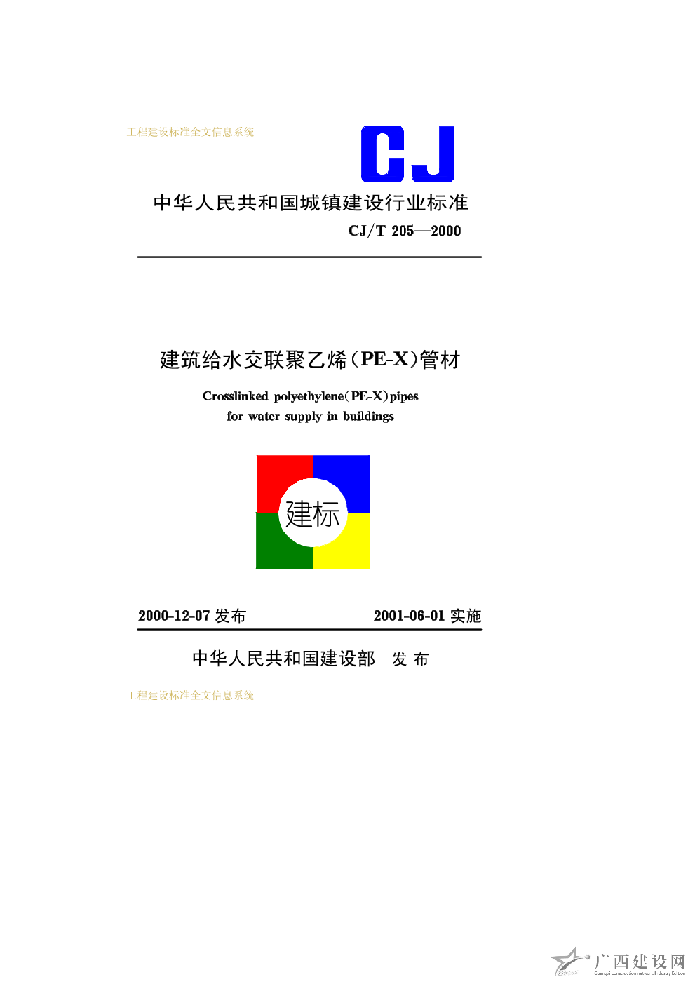 建筑給水交聯(lián)聚乙烯(PE/X)管材 CJ/T205—2000