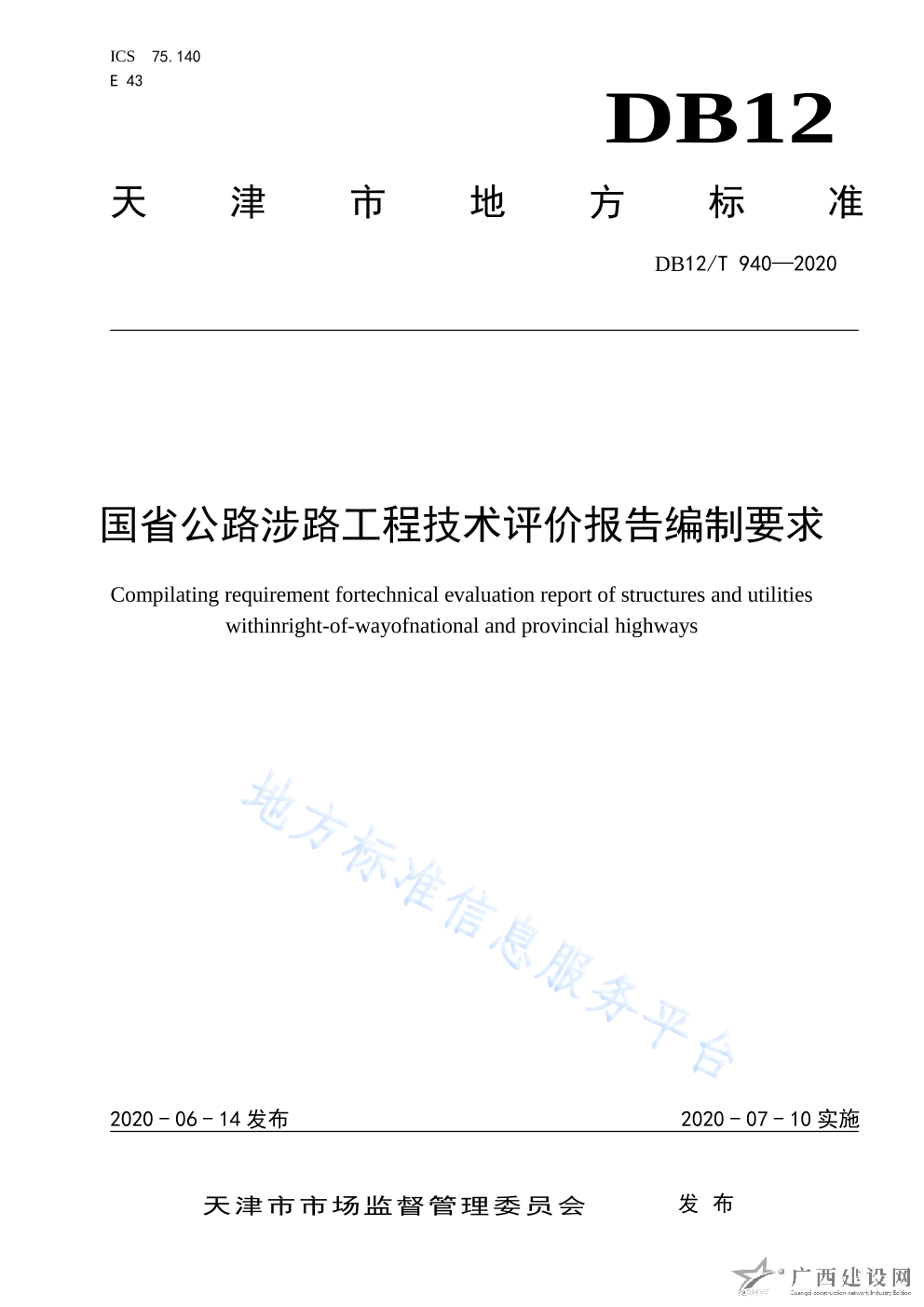 DB12 T939-2020國(guó)省公路涉路工程技術(shù)要求