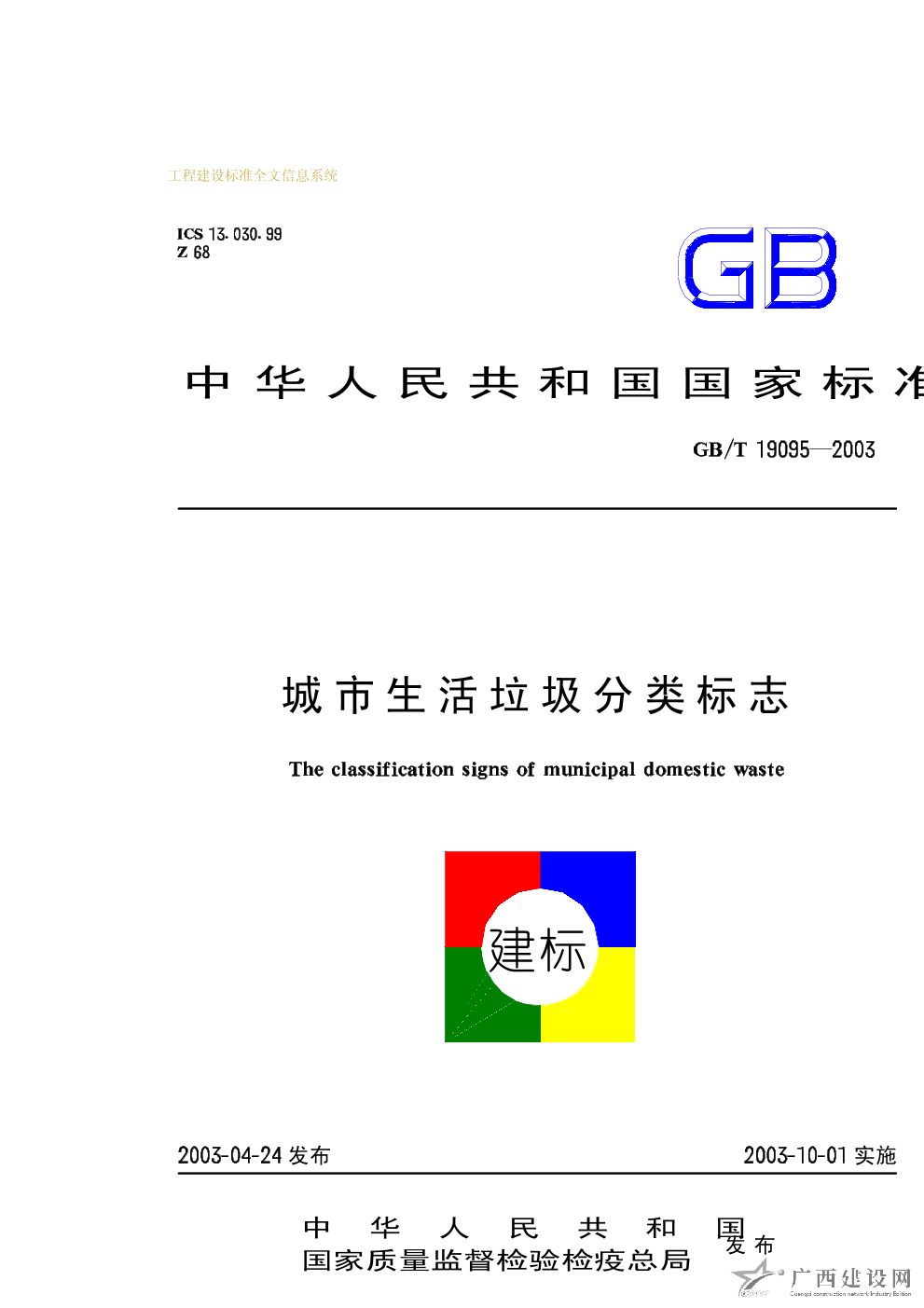 城市生活垃圾分類標志 GB/T19095-2003