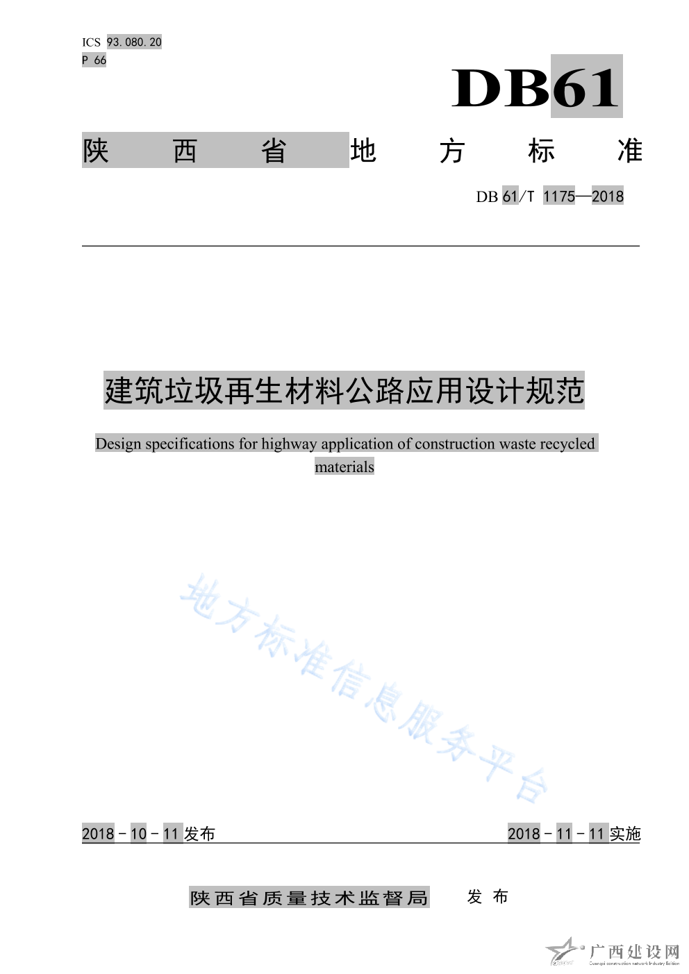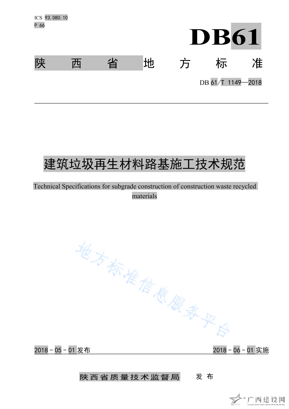 DB61 T1174-2018建筑垃圾再生材料處理公路軟弱地基技術規(guī)范