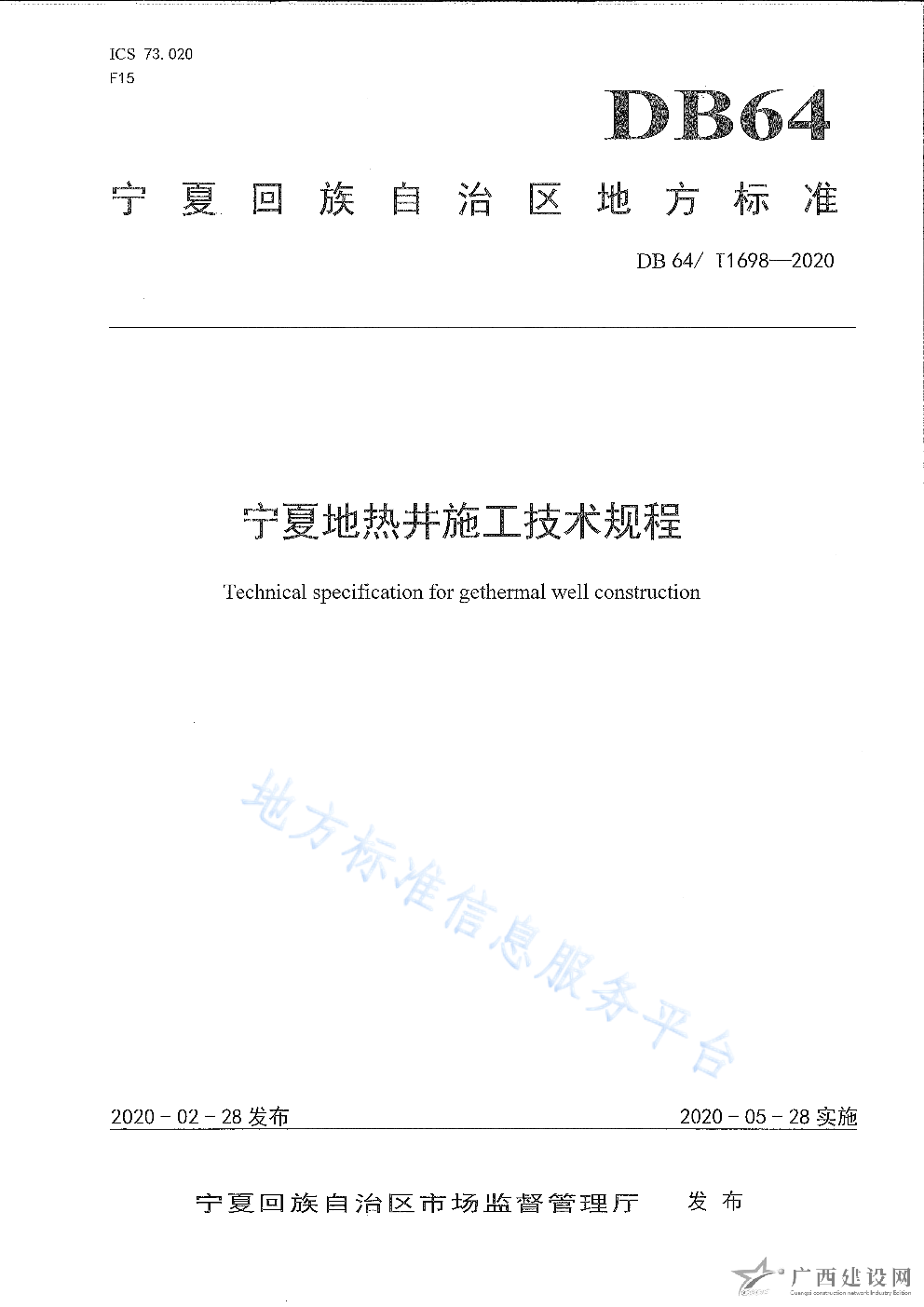 DB64 1697-2020寧夏淺層地溫能勘察施工技術規程