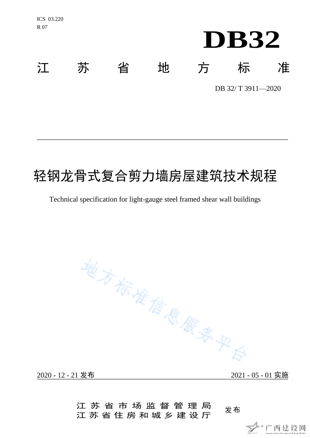 DB32 T3911-2020輕鋼龍骨式復(fù)合剪力墻房屋建筑技術(shù)規(guī)程