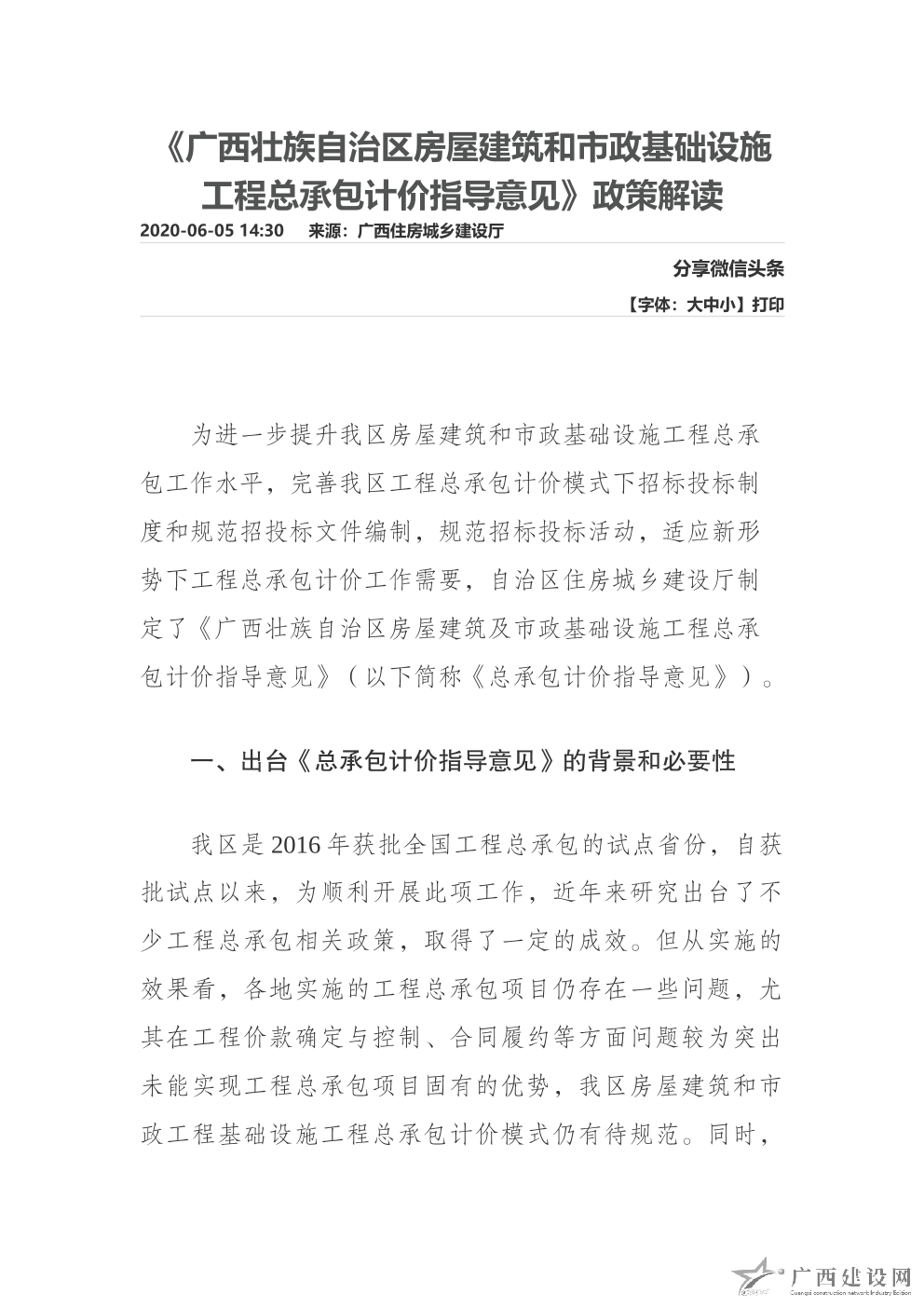 《廣西壯族自治區房屋建筑和市政基礎設施工程總承包招標文件范本(2020年版)》 政策解讀材料