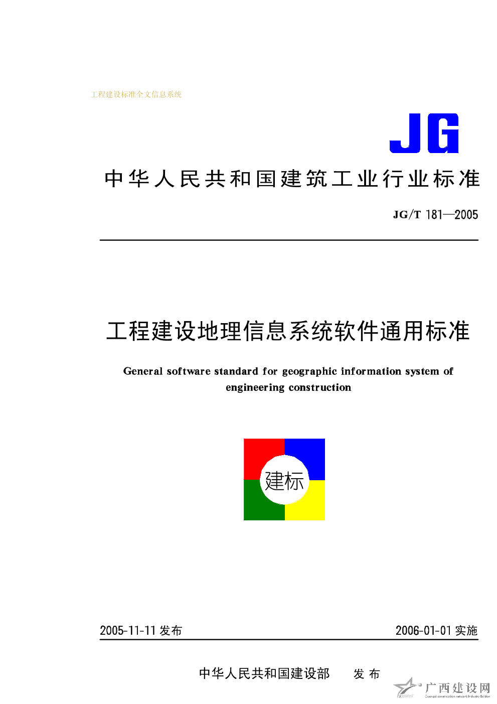 工程建設地理信息系統軟件通用標準 JG/T181-2005