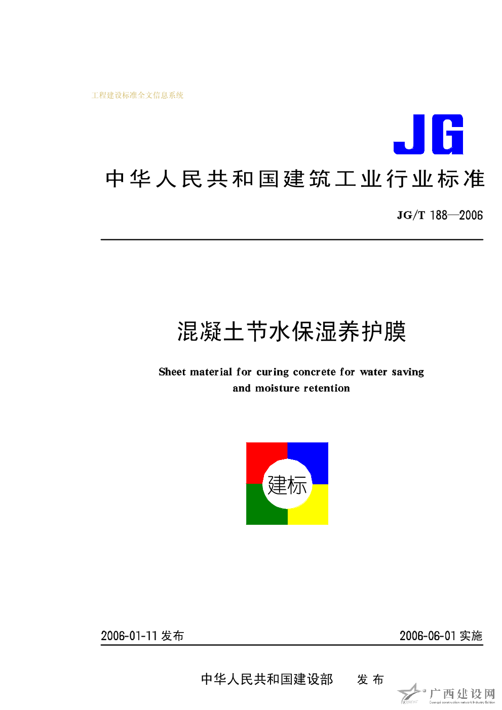 混凝土節(jié)水保濕養(yǎng)護膜 JG/T188-2006