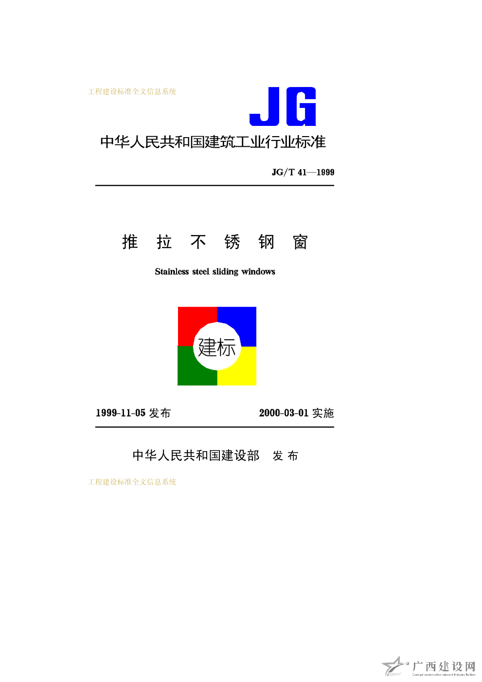 開平、推拉彩色涂層鋼板門窗 JG/T3041-1997