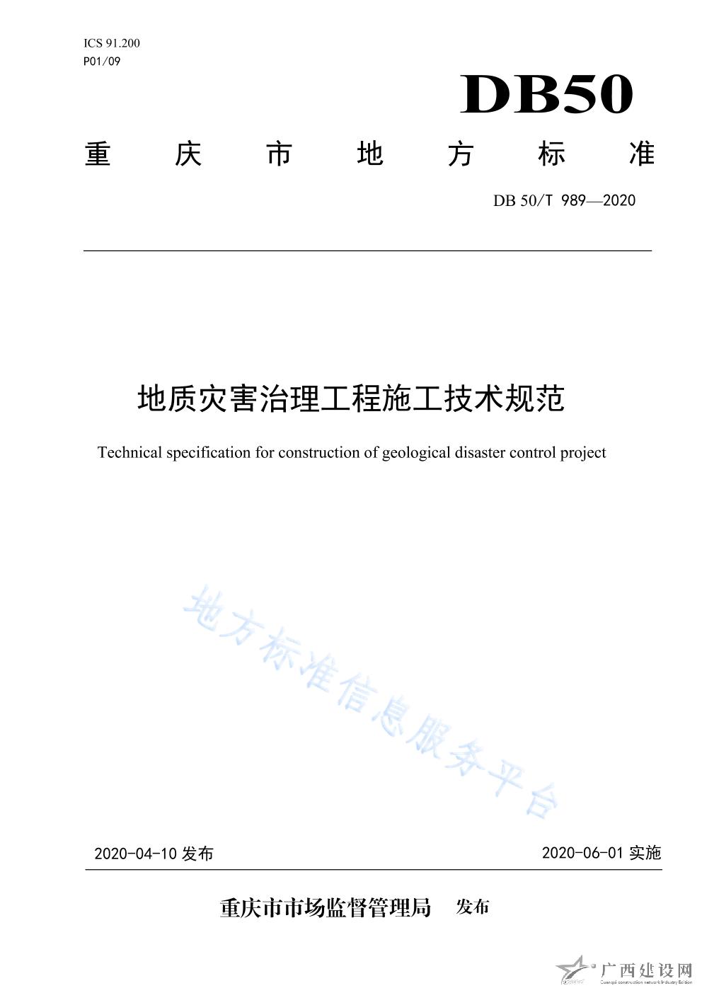 DB50 T1010-2020水利工程物業化管理技術規范