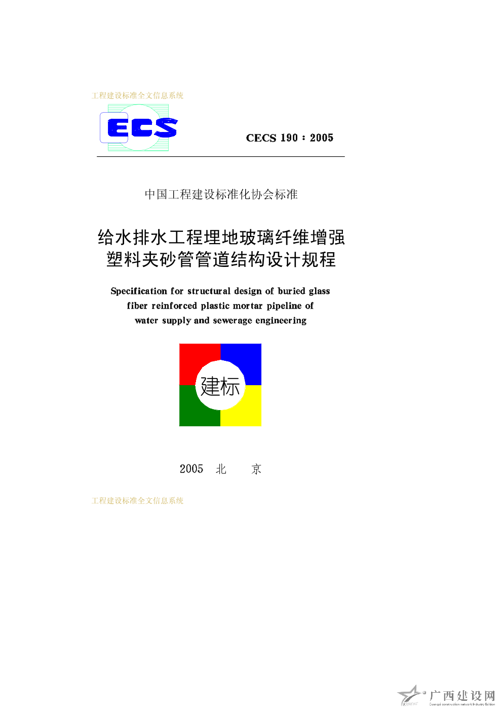 給水排水工程埋地玻璃纖維增強(qiáng)塑料夾砂管管道結(jié)構(gòu)設(shè)計(jì)規(guī)程 Cecs190