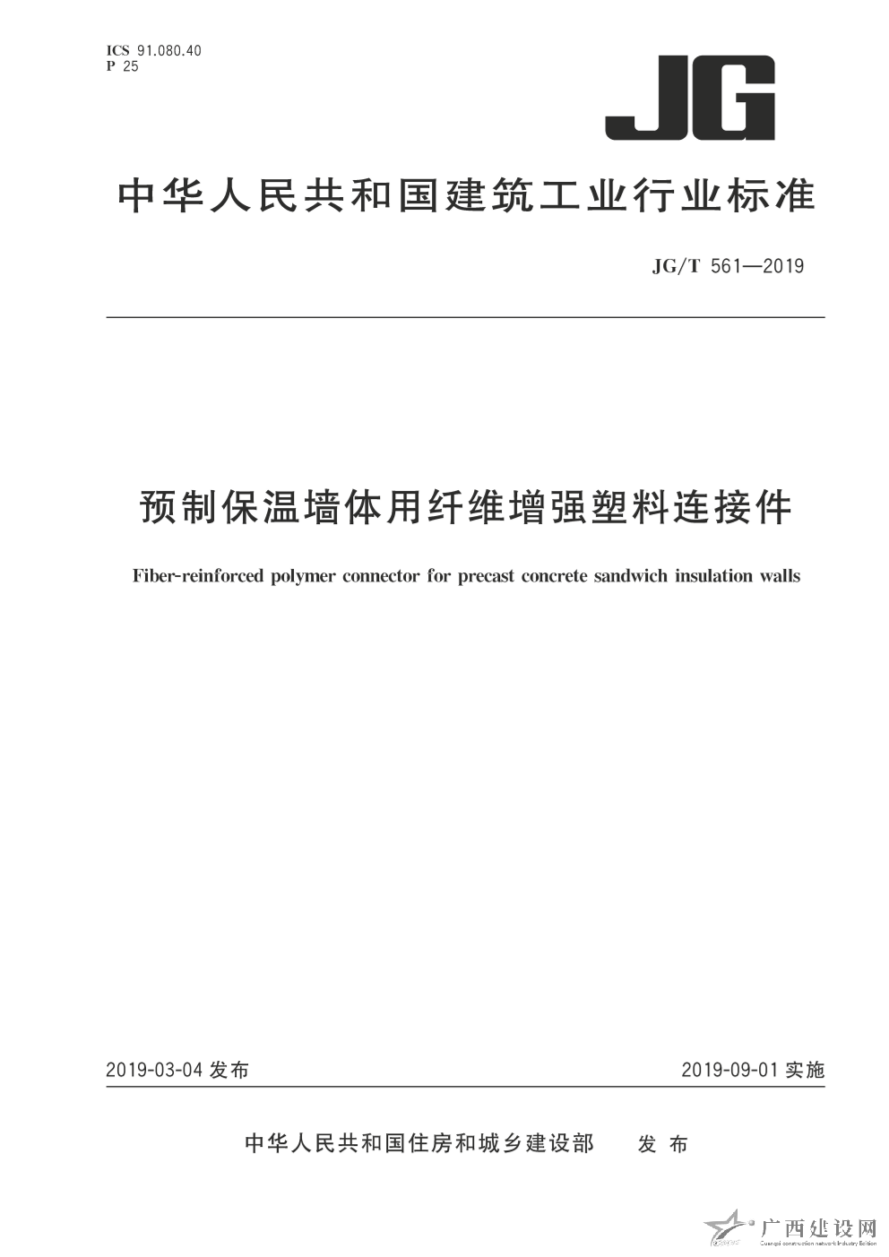 JGT561-2019 預(yù)制保溫墻體用纖維增強(qiáng)塑料連接件