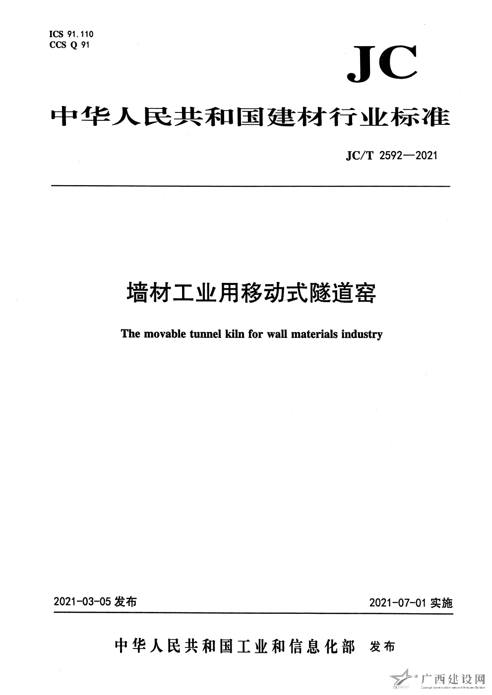JC T 2592-2021 墻材工業(yè)用移動(dòng)式隧道窯