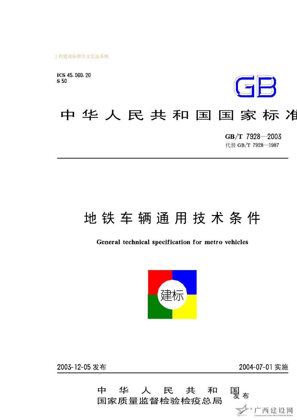 地鐵車輛通用技術(shù)條件 GB/T7928-2003