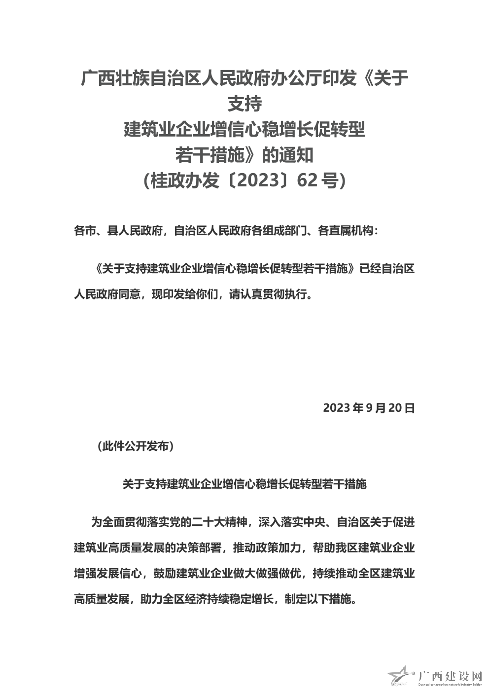 《廣西壯族自治區(qū)人民政府辦公廳印發(fā)〈關(guān)于支持建筑業(yè)企業(yè)增信心穩(wěn)增長促轉(zhuǎn)型若干措施〉的通知》政策解讀材料