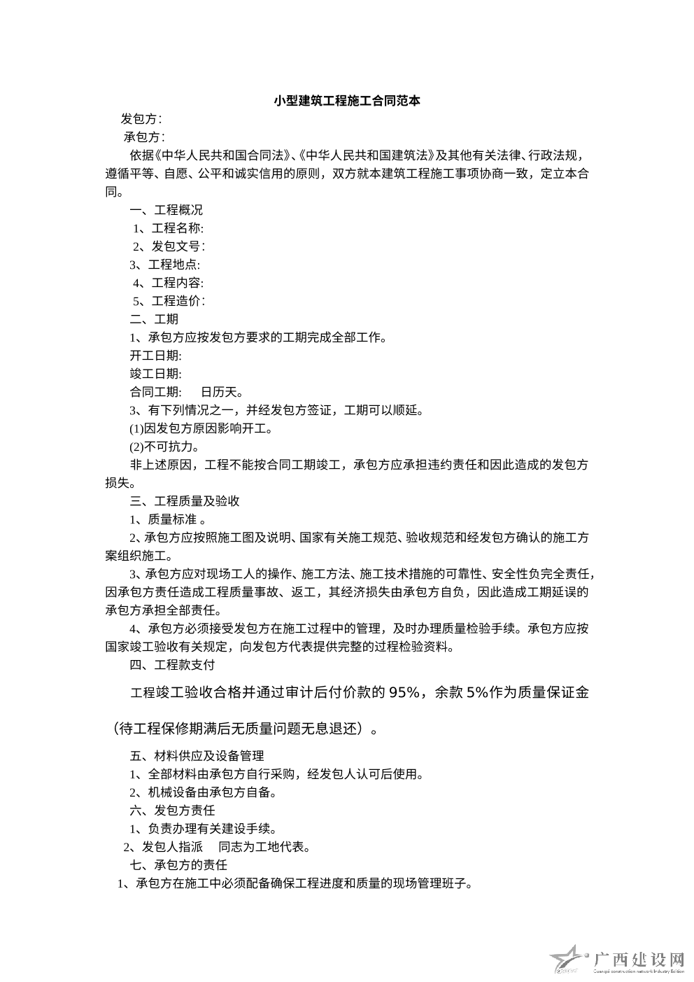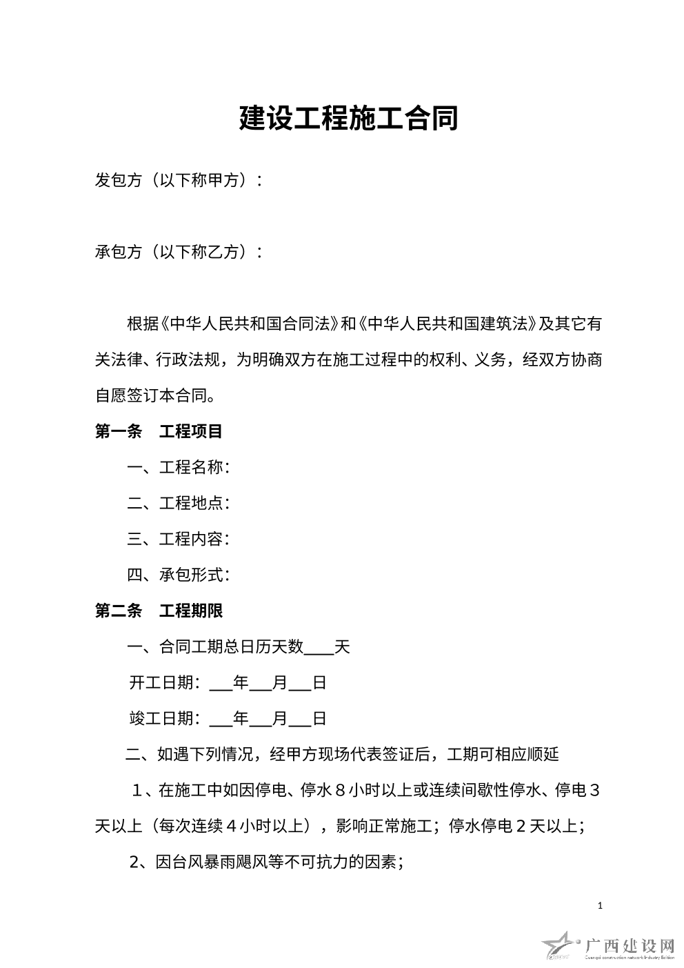 建筑施工合同范本