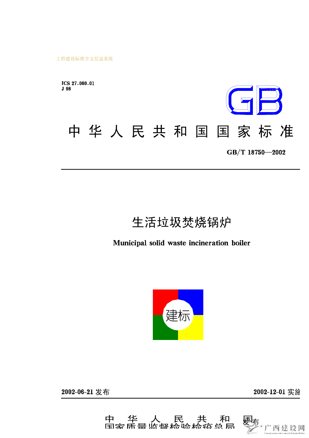生活垃圾焚燒鍋爐 GB/T18750—2002