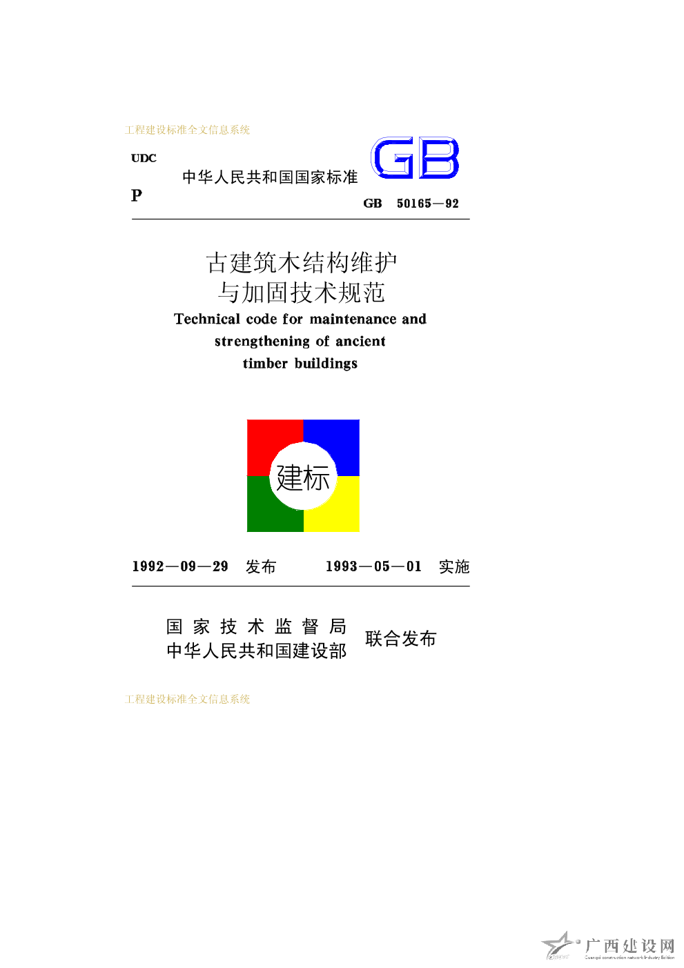 古建筑木結(jié)構(gòu)維護(hù)與加固技術(shù)規(guī)范 GB50165-92
