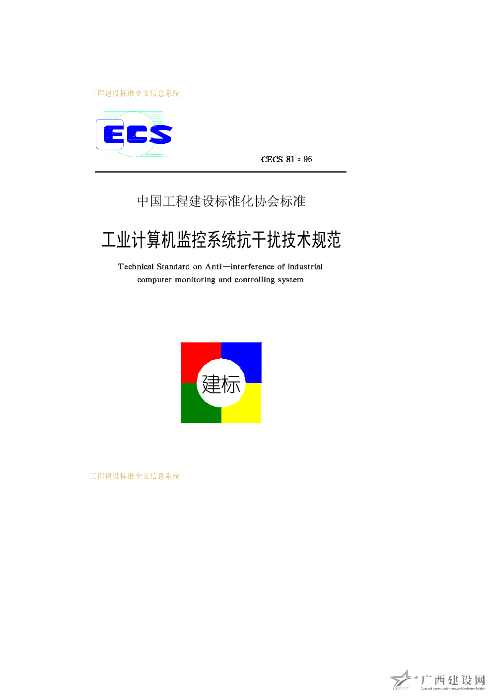工業計算機監控系統抗干擾技術規范 CECS81∶96