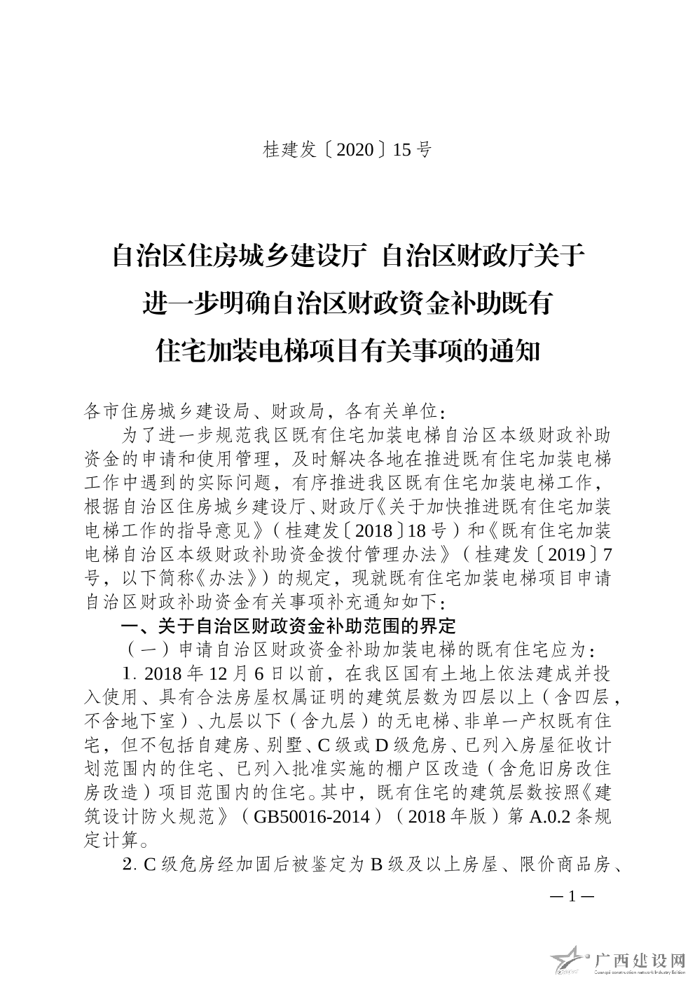 《關(guān)于進(jìn)一步明確自治區(qū)財(cái)政資金補(bǔ)助既有住宅加裝電梯項(xiàng)目有關(guān)事項(xiàng)的通知》政策解讀材料