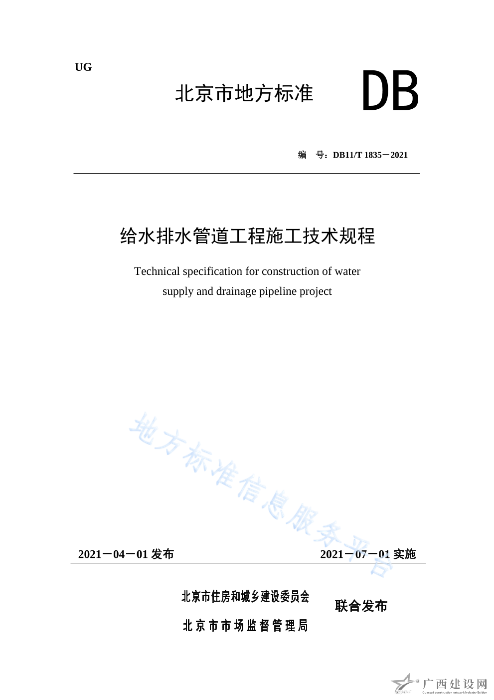 DB11 T+1835-2021給水排水管道工程施工技術規程