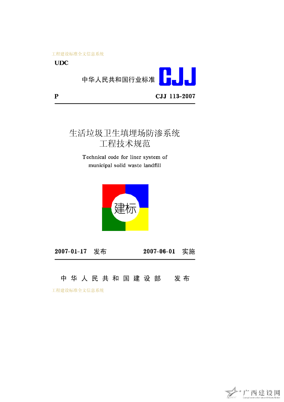 生活垃圾衛生填埋場防滲系統工程技術規范 CJJ113-2007