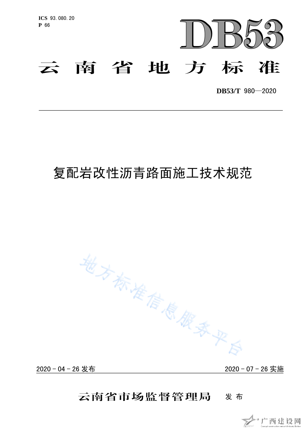 DB53 T980-2020復(fù)配巖改性瀝青路面施工技術(shù)規(guī)范