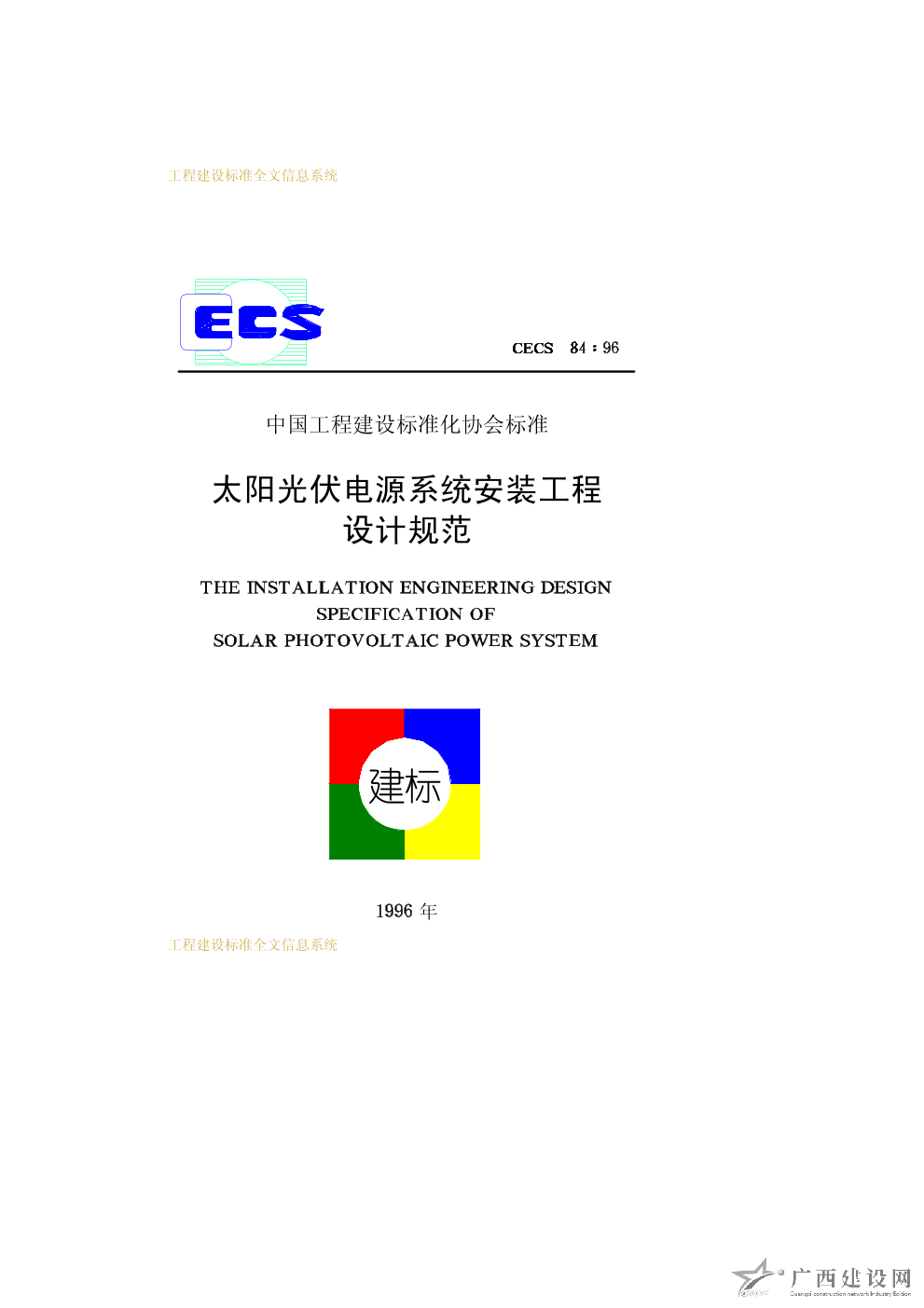 太陽光伏電源系統(tǒng)安裝工程設(shè)計規(guī)范 CECS84∶96