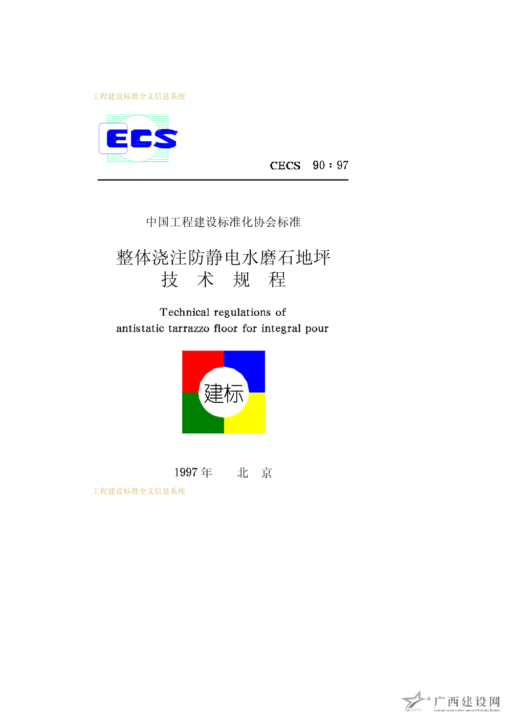 整體澆注防靜電水磨石地坪技術規程 CECS90∶97