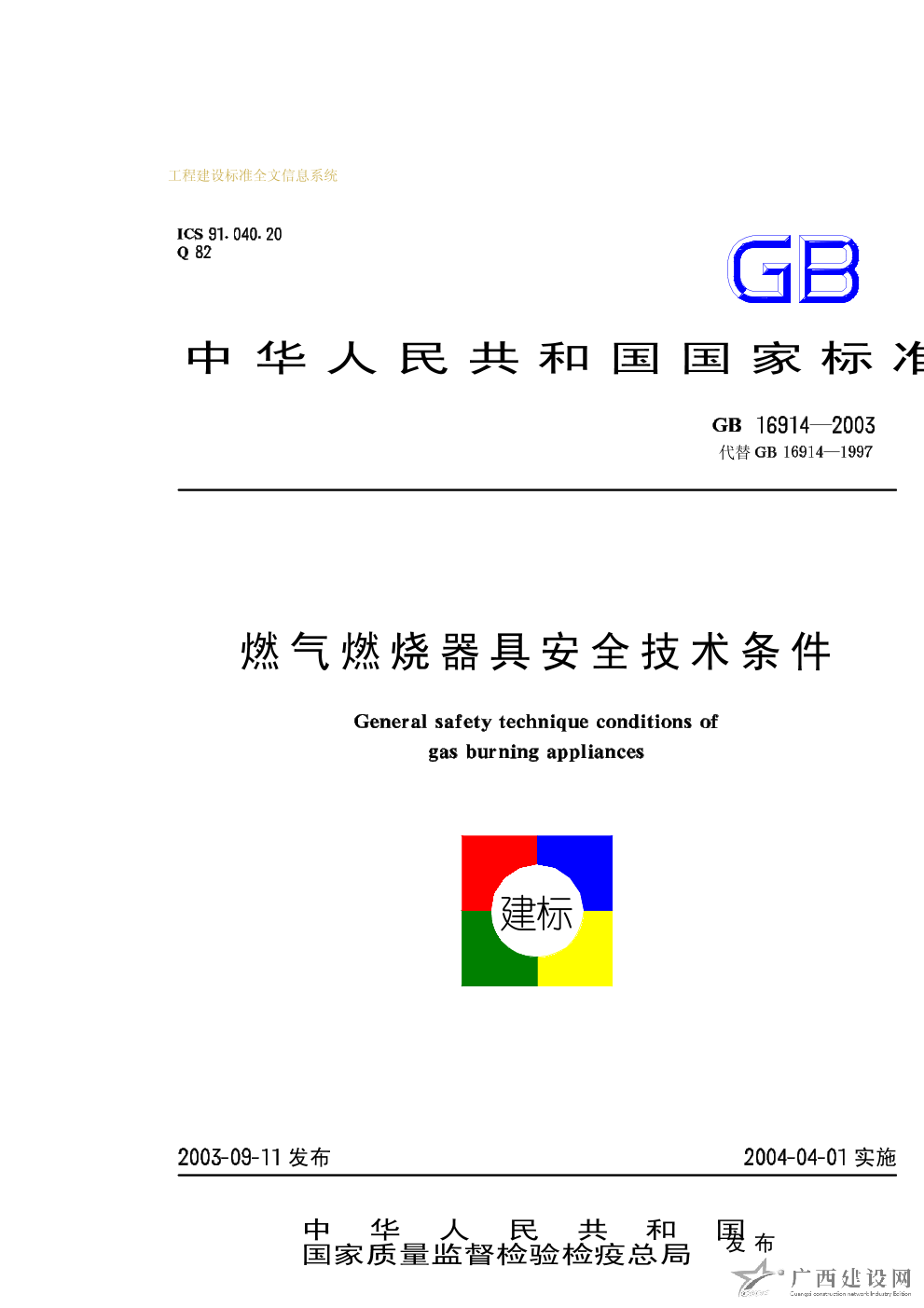 燃?xì)馊紵骶甙踩夹g(shù)條件 GB16914-2003